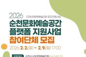 뉴한국방송뉴스통신사 신다은기자 기자 | (재)순천문화재단은 오는 2월 2일부터 9일까지 지역 문화예술단체의 안정적인 활동 기반을 마련하고, 문화예술 공간을 지역 문화예술 생태계의 거점으로 육성하기 위해 ‘2026 순천문화예술공간 플랫폼 지원사업’에 참여할 문화예술단체를 모집한다. ‘순천문화예술공간 플랫폼 지원사업’은 기존의 임차료 보전 중심 지원 방식에서 벗어나, 문화예술단체의 공간을 예술활동과 예술인간 교류, 시민과의 성과 공유가 유기적으로 이루어지는 공간 기반 문화예술 플랫폼으로 전환하는 데 목적을 두고 있다. 지원 대상은 순천시에서 활동 중인 문화예술단체(최소구성원 7인)로, 단체가 운영하거나 사용하는 공간을 중심으로 연습·연구·발표·교류·시민 참여 등 다양한 예술 활동을 운영하고자 하는 단체라면 신청할 수 있다. 총 20팀 내외를 선발해 단체당 150만원에서 최대 400만원까지 최장 9개월간 단체공간의 순수 임차료를 지원한다. 특히 이번 사업은 공간 운영을 단순한 사용 여부가 아닌, ▲공간을 활용한 예술 활동의 지속성 ▲예술인 간 교류 및 협업 ▲시민과의 소통과 공개 활동 등 공간을 통해 실