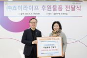 뉴한국방송뉴스통신사 신유철기자 기자 | 금천구는 ㈜죠이라이프가 지역 내 취약계층에게 4,000만 원 상당 건강식품을 후원했다고 밝혔다. 이와 관련 지난 20일 오전 금천구청 소회의실에서 후원물품 전달식이 진행됐다. 전달식에서는 유성훈 금천구청장과 정난희 ㈜죠이라이프 대표가 참석해 관내 취약계층 지원에 뜻을 모았다. 후원받은 건강식품은 일상적인 건강 관리에 어려움을 겪는 주민들의 건강한 생활 유지를 돕기 위해 관내 취약계층에게 전달될 예정이라고 구는 설명했다. ㈜죠이라이프는 금천구 관내에 위치한 화장품, 건강식품 전문 생산 기업이다. 특히 장애인 고용에 선도적인 역할을 하고 있는 장애인기업으로 사회적 가치 실현에 앞장서고 있다. 지난해에는 개청 30주년을 기념해 관내 취약계층에게 먹거리‧생활용품을 지원한 ‘훈훈한 별천지 겨울마켓’에 참여해 400만 원을 후원했다. 이어 올해에도 지역사회에 나눔을 이어가고 있다. 정난희 ㈜죠이라이프 대표는 “도움이 필요한 이웃들이 건강에 대한 부담을 덜고 일상을 이어가는 데 보탬이 되길 바란다”라고 전했다. 유성훈 금천구청장은 “따뜻한 마음을