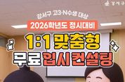 뉴한국방송뉴스통신사 신유철기자 기자 | 서울 강서구가 2026학년도 대학 정시모집을 앞두고 관내 고등학교 3학년과 재수생, 학부모를 대상으로 ‘1대1 맞춤형 대입 진학 컨설팅’을 운영한다. 컨설팅은 오는 12월 20일부터 21일까지 이틀간 강서평생학습관(공항대로 615) 2층 강당에서 진행된다. 구는 정시모집 정보를 해석하고 전략을 수립하는 데 어려움을 겪는 학생과 학부모에게 실질적 도움을 제공하기 위해 이번 프로그램을 마련했다. 서울시교육청 대학진학지도지원단 소속 현직 교사 6명이 참여해 수험생의 학업 성향과 진로 목표를 분석하고 개인별 입시 전략을 제시한다. 상담은 오전 9시 30분부터 오후 2시 55분까지 총 6차로 운영되며, 1인당 40분씩 집중 상담이 진행된다. 수능 성적표와 진학 희망 자료 등을 토대로 학생별 강점과 지원 가능 대학 및 학과를 면밀히 분석해 최적의 입시 전략을 안내한다. 컨설팅은 총 72명을 대상으로 한다. 참여 신청은 오는 12월 9일 오전 10시부터 강서구청 누리집 통합예약시스템을 통해 선착순 접수한다. 접수가 완료되면 상담 일정이 문자로 개별