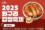 뉴한국방송뉴스통신사 신유철기자 기자 | 구리시상권활성화재단은 오는 12월 6일 구리광장에서 ‘2025 와구리 김장축제’를 개최한다고 밝혔다. 이번 축제는 ‘경기도 상권 친화형 도시 조성 공모사업’ 선정으로 추진되는 ‘구리 윈터페스타’의 첫 번째 행사로, 지역 농산물 소비 촉진, 전통문화 체험, 이웃돕기 나눔 실천을 주요 가치로 삼아 시민 누구나 참여할 수 있는 겨울 축제로 마련됐다. 축제의 하이라이트인 김장 체험은 시민들이 직접 김치를 담가보는 프로그램으로 진행되며, 흑백요리사로 큰 인기를 얻고 있는 이모카세 김미령 한식 요리사의 지도로 구리시새마을회, 구리 도시공사, 무지개합창단 등 지역 자원봉사자들이 함께해 김장을 처음 접하는 시민들도 손쉽게 전통 김치를 완성할 수 있도록 도울 예정이다. 이날 담근 김치의 일부는 관내 홀로 어르신, 다문화가정 등 취약계층에 전달돼 시민이 직접 참여하는 연말 나눔 활동으로 따뜻한 의미를 더한다. 또한 축제장을 찾은 시민들을 위해 트로트 가수 태진아의 공연, 가야금 영재 조영재 & 아인스바움 윈드 챔버 연주 등 풍성한 무대 프로그램과 지역 소상공인 먹거리 부스, 다