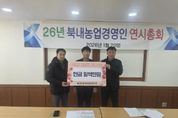 뉴한국방송뉴스통신사 신유철기자 기자 | 여주시 북내면 후계농업경영인회는 지난 20일, 북내면 행정복지센터를 방문해 관내 어려운 이웃을 위한 이웃돕기 성금 100만 원을 전달했다. 이번 기탁은 회원들이 뜻을 모아 개최하는 연시총회를 앞두고, 지역사회의 소외된 이웃들이 따뜻한 새해를 맞이하기를 바라는 마음에서 진행됐다. 북내면 후계농업경영인회는 매년 잊지 않고 어려운 이웃을 위한 성금을 기탁하며 지역사회의 귀감이 되고 있다. 전달된 성금은 경기사회복지공동모금회를 통해 북내면 내 저소득층 및 복지 사각지대 가구를 지원하는 사업에 사용될 예정이다. [뉴스출처 : 경기도 여주시]
