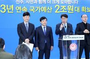 뉴한국방송뉴스통신사 김성의 기자 | 전주시가 3년 연속으로 2조 원대 국가 예산을 확보하면서 새로운 전주를 만들 밑거름을 한층 더 단단히 다질 수 있게 됐다. 우범기 전주시장과 이성윤 국회의원(더불어민주당, 전주시을)은 4일 시청 4층 대회의실에서 2026년 국가예산 확보 관련 브리핑을 열고, 내년도 국가 예산으로 올해 당초 예산(2조 1595억 원)보다 1340억 원(6.2%) 늘어난 2조 2925억 원을 확보했다고 4일 밝혔다. 내년도 국가 예산을 분야별로 살펴보면 △경제·산업 분야 8560억 원 △광역·도시 분야 2767억 원 △문화·관광 분야 1383억 원 △복지·사회안전망 분야 1조 215억 원이다. 먼저 경제·산업 분야에서는 △협업지능 피지컬 AI 기반 SW플랫폼 연구개발 생태계 조성(766억 원) △AI 신뢰성 검증 허브센터 구축(10억 원) 등 AI시대를 선도하기 위한 예산을 확보했으며, △국립 전주전문과학관(5억 원) △반도체 공동연구소 운영(47억 원) △글로벌 혁신의료기술 실증지원센터(12억 원) 등 글로벌시장 경쟁력을 강화하고 차세대 신성장 산업을 주도할 예산도 챙겼다. 또, △탄소소재국