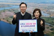 뉴한국방송뉴스통신사 신다은기자 기자 | 전라남도 나주시는 지난 29일 ㈜일성기업 이순옥 대표(오른쪽)가 고향사랑기부제에 500만 원을 기탁했다고 밝혔다. 이순옥 대표는 고향사랑기부제가 시행된 2023년부터 3년 동안 매년 500만 원씩 총 1500만 원을 기부하며 지속적인 사랑 나눔을 실천하고 있다. ㈜일성기업은 나주시 반남면에서 옹벽 블록과 가로수 보호판 등을 생산하는 기업으로 무더운 여름철에는 삼계닭을 기부하는 등 지역 어르신들의 건강을 돌보기 위한 나눔 문화 확산에도 앞장서 왔다. 이순옥 대표는 “꾸준한 나눔을 통해 지역사회와 상생하며 성장하는 기업으로 자리매김하고 싶다”며 “기부금이 지역 발전에 소중히 쓰이기를 바란다”고 밝혔다. 윤병태 나주시장은 “3년 연속 고향사랑기부제에 동참해 나눔의 뜻을 실천하는 이순옥 대표께 깊이 감사드린다”며 “기탁해 주신 기부금은 시민 복리 증진과 나주의 발전을 위해 적극 활용하겠다”고 말했다. 한편 고향사랑기부제는 개인이 자신의 주소지를 제외한 지방자치단체에 기부할 수 있는 제도로 올해부터 개인별 연간 기부 한도가 2천만 원으로 확대됐다. [뉴