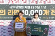 뉴한국방송뉴스통신사 신유철기자 기자 | 강북구의회 김명희 의장(번1·2동, 수유2·3동)은 지난 12월 2일, 강북문화예술회관 소나무홀에서 열린 강북문화원 개원 29주년 기념 ‘사랑의 라면트리’ 행사에 참석해 지역 이웃을 위한 나눔 활동에 함께했다. ‘사랑의 라면트리’ 행사는 강북문화원이 주민들로부터 받아온 관심과 성원을 어려운 이웃들에게 되돌리기 위해 마련한 사회공헌 행사로, 올해로 3회째를 맞았다. 한국마사회 지원사업으로도 선정되며 지역의 대표적 나눔 행사로 자리잡았다. 행사는 라면 전달식을 시작으로 설장구 식전공연, 유공자 표창, 문화공연 등 다양한 프로그램으로 채워졌다. 특히 올해는 강북미술협회가 20여 점의 작품을 기증해 ‘그림 기부전’을 함께 열며, 문화와 나눔을 결합한 새로운 형태의 기부가 주목을 받았다. 김명희 의장은 황정희 문화원장과 함께 라면 전달식에 참석해 정성을 모은 라면 1만 개를 어려운 이웃에게 전달할 준비를 마쳤으며, ‘2025 서울시 구의원 한마음 체육대회’에서 받은 ‘아차상’ 상금도 문화원에 기부해 뜻을 더했다. 김명희 의장은 “3년째 이어지는 ‘사랑의 라면트리’가 이