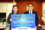 뉴한국방송뉴스통신사 신유철기자 기자 | 경산시는 12일 대구한의대학교 변창훈 총장과 교직원들이 십시일반하여 모은 1,005만 원의 고향사랑기부금을 경산시에 전달했다고 밝혔다. 연말을 맞아 고향사랑기부제에 대한 폭발적인 관심이 이어지고 있는 가운데 대구한의대학교의 교직원들은 지난해에 이어 올해도 경산시에 꾸준히 기부를 이어가고 있다. 변창훈 총장은 “지역의 발전을 응원하는 마음으로 교직원들과 함께 고이 모은 고향사랑기부금을 전달하는 뜻깊은 자리에 함께하게 되어 영광이다”고 하며, 앞으로도 지역사회에 계속 힘을 보탤 것을 약속했다. 조현일 시장은 “경산에 대한 한결같은 마음을 고향사랑기부금으로 표현해 주신 데 대하여 깊은 감사를 드린다. 대구한의대학교의 발전도 함께 응원한다”고 답했다. 한편, 경산시는 25일까지 10만 원 이상 기부자를 대상으로 100명을 추첨해 배민앱 이용권(2만원권 50매), 커피쿠폰(1만원권 50매)을 지급하는 이벤트를 실시하고 있다. 자세한 내용은 경산시 고향사랑기부제 홈페이지'gslove.kr'에서 확인할 수 있다. [뉴스출처 : 경상북도 경산시]