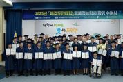 뉴한국방송뉴스통신사 신유철기자 기자 | 제주 농업·수산업·축산업 분야에서 50년 이상 종사한 도민 49명이 각자 삶의 가치를 인정받아 전국 최초로 명예직능학사 학위를 받았다. 제주특별자치도는 29일 도청 탐라홀에서 '2025년 제주도민대학 명예직능학위' 수여식을 개최했다. 수여식에는 오영훈 제주도지사와 학위 수여자, 가족, 농·어업·축산 단체 관계자 등 200여 명이 참석해 평생을 1차산업에 바친 도민들의 공로를 기렸다. 이 제도는 배움의 가치를 학교 교육에만 국한하지 않고, 삶의 현장에서 축적된 전문성과 경험을 사회적으로 인정하기 위해 마련됐다. 농업·수산업·축산업 분야의 도민 49명(농업 35명, 수산업 8명, 축산업 6명)이 명예직능학사 학위를 받았으며, 이들의 평균 연령은 73.5세, 평균 종사 기간은 53.3년에 달했다. 이번에 명예직능학사 학위를 받은 농업 분야의 오병국(76세) 씨는 53년간 제주 농업 현장에서 분투해왔다. 기후변화 시대에 대응하는 고소득 작물을 발굴하고 과학영농을 실천해 지역 농업의 품격을 높인 그는 “농사는 혼자 짓는 게 아니라 함께 나누는 것”이라는