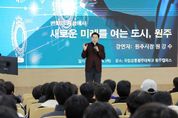 뉴한국방송뉴스통신사 양호선기자 기자 | 원강수 원주시장은 지난 4일 국립강릉원주대학교 원주캠퍼스에서 강원원주산학융합지구 소속 학부생 160여 명을 대상으로 ‘변화의 중심에서 새로운 미래를 여는 도시, 원주’라는 주제로 특별 강연을 진행했다. 이번 특강은 미래 첨단산업을 중심으로 변화하는 원주의 산업 생태계를 소개하고, 지역 청년들과 직접 소통하기 위해 마련됐다. 정보통신공학과, 멀티미디어공학과, 자동차공학과, 의료기기융복합과 학생들을 대상으로 전공과 연계된 산업 현황과 기술 흐름, 향후 원주시의 발전 방향 등을 폭넓게 제공했다. 원강수 시장은 강연에서 미래 첨단산업이 서로 연계·확장되면서 원주가 융합형 산업도시로 자리매김하고 있다고 강조했다. 특히 AI 융합 산업, 첨단의료복합단지 조성, 반도체 산업 생태계 구축, 미래 모빌리티 산업 육성, 드론 산업 기반 조성 등 주요 사업을 학생들의 전공 분야와 연결해 설명함으로써 지역인재들이 자신의 진로와 미래를 구체적으로 그려볼 수 있도록 도왔다. 앞으로도 원주시는 대학 및 산학융합원과 협력 방안을 적극 모색하고, 미래 전략사업을 차질 없이 추진해 청년들이 지역에서 성장