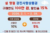 뉴한국방송뉴스통신사 신다은기자 기자 | 강진군이 설 명절을 맞아 2월 한 달간 강진사랑상품권 구매한도와 할인율을 상향 조정한다. 지원 기간은 오는 2월 1일부터 2월 28일까지이며, 대상은 모바일(착) 강진사랑상품권이다. 이번 상향 조정은 설 명절 기간 소비 진작과 지역경제를 활성화하기 위해 조정된 것으로 모바일 (착) 상품권의 구매한도를 기존 70만 원에서 100만 원으로 상향하고, 할인율은 기존 선할인 10%에서 후캐시백 5%를 추가 지급하는 총 15%로 상향했다. 다만, 지류 상품권은 부정유통 방지를 위해 구매한도 70만 원, 선할인 10%를 기존대로 유지한다. 이번 강진사랑상품권 특별 상향 운영은 2025년 지역사랑상품권 발행 우수 지자체로 선정되어 특별교부세로 받은 2억 원으로 추진된다. 이는 강진군이 지역사랑상품권의 안정적인 발행과 건전한 유통 관리, 국비 연계 집행을 적극 추진해 온 성과로, 지역경제 활성화 정책의 우수성을 대외적으로 인정받은 결과다. 강진군은 7년 연속 강진사랑상품권 할인율을 연중 10%로 유지하며 지역경제 활성화에 앞장서 왔으며, 2026년에