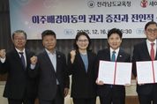 뉴한국방송뉴스통신사 김성의 기자 | 전라남도교육청은 16일 청사 비즈니스실에서 세이브더칠드런(총장 정태영)과 ‘이주배경아동의 권리 보장과 전인적 성장을 위한 업무협약’을 체결했다. 이번 협약은 이주배경학생, 특히 법적 지위가 불안정한 미등록 아동들이 건강하게 성장할 수 있도록 행정적, 재정적 지원 체계를 마련하고, 모든 아동이 차별 없이 교육받을 수 있는 포용적 교육 생태계를 조성하기 위해 추진됐다. 협약에 따라 양 기관은 ▲ 미등록 이주배경학생의 건강·심리·주거 지원 ▲ 이주배경학생과 비이주배경학생 간 통합 활동 지원 ▲ 아동권리 교육 확대 및 교육공동체 인식 개선 등 다양한 사업을 함께 추진하게 된다. 특히, ‘미등록 이주배경학생의 건강·심리·주거 지원’사업은 그동안 사고나 질병에 대해 지원받기 어려웠던 미등록 이주배경학생들의 보호 사각지대를 해소할 수 있을 것으로 기대된다. 정태영 세이브더칠드런 총장은 “세이브더칠드런은 올해부터 3년 동안 이주배경아동을 전략 대상으로 선정하고 지원 사업에 착수했다. 이번 협약을 통해 전남 이주배경아동이 건강하고 안전하게 성장할 수 있는 기반이 마련되기를 기대한