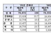 뉴한국방송뉴스통신사 권영분기자 기자 | 문화체육관광부는 2026년도 문체부 예산이 7조 8,555억 원으로 최종 확정되었다고 밝혔다. 이는 올해 본예산 대비 7,883억 원(11.2%)이 증가한 규모이다. 문체부는 이번 예산을 ‘케이-컬처’ 300조 원 시대 출발을 위한 예산으로 콘텐츠산업의 국가전략산업화, 국민이 함께 누리는 관광 등에 주력해 편성했다고 밝힌 바 있다. 부문별로 살펴보면 콘텐츠 부문에서는 ‘케이-콘텐츠’ 펀드 출자(4,300억 원, +1,350억 원), 인공지능 콘텐츠 제작 지원(238억 원, +158억 원), 대중음악 공연환경개선 지원(120억 원, 신규), ‘케이-콘텐츠’ 복합문화공간 조성(155억 원, +150억 원), 게임 제작 환경 인공지능 전환 지원(75억 원, 신규), 방송영상 온라인동영상서비스(OTT) 특화콘텐츠 제작지원(399억 원, +96억 원) 등 총 1조 6,177억 원을 편성했으며, 올해 대비 가장 큰 폭(3,443억 원)으로 예산이 증가했다. 문화예술 부문에서는 ‘케이-아트’ 청년창작자 지원(180억 원, 신규), ‘케이-뮤지컬’ 지원(244억 원, +213억 원), 예술인 복지
