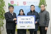 뉴한국방송뉴스통신사 신유철기자 기자 | 중앙한방병원에서는 지난 16일 여주시에 이웃돕기 현물로 130만원 상당의 두유 100박스를 기탁했다. 김상태 병원장은 수년간 기부를 이어오고 있으며, 금번 기탁된 두유는 구세군여주기초푸드뱅크(오학동 소재)에 전달하여 결식 우려 등으로 식료품 등을 지원받고 있는 취약계층에게 지원될 예정이다. 여주시에서는 연말연시 나눔문화 확산을 위해 2025. 12. 1. ~ 2026. 1. 31. 기간 동안'희망2026 나눔캠페인'을 추진중에 있으며, 여주시청 외에도 12개 읍면동 행정복지센터를 통해 연일 개인 · 단체 · 기업 등 이웃을 돕고자 하는 기부자들의 따스한 손길이 이어지고 있다. [뉴스출처 : 경기도 여주시]