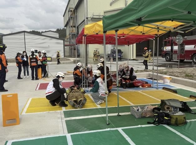 특히 성신양회 단양공장 대체연료저장소에서 차량 화재가 발생해 공장으로 확산되고, 붕괴 및 작업자 실종으로 이어지는 복합재난 상황을 가정해 진행됐다.