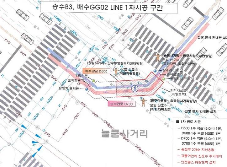 뉴한국방송뉴스통신사 양호선기자 기자 | 원주시상하수도사업소는 태장배수지 설치사업의 일환으로 진행되는 늘품사거리 교차로 구간 송배수관로 설치공사를 야간에 실시한다.