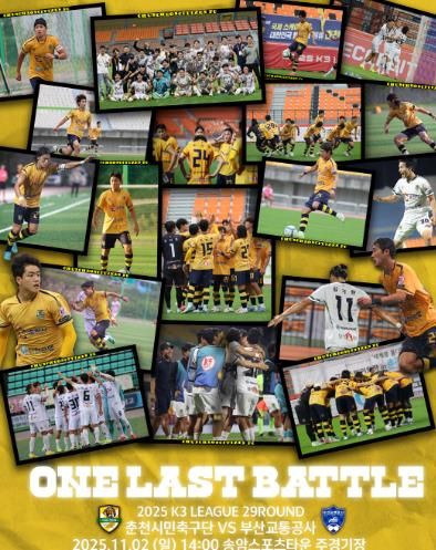 뉴한국방송뉴스통신사 양호선기자 기자 | 춘천시민축구단의 2025 시즌 마지막 홈경기가 오는 11월 2일 오후 2시 송암스포츠타운에서 열린다.