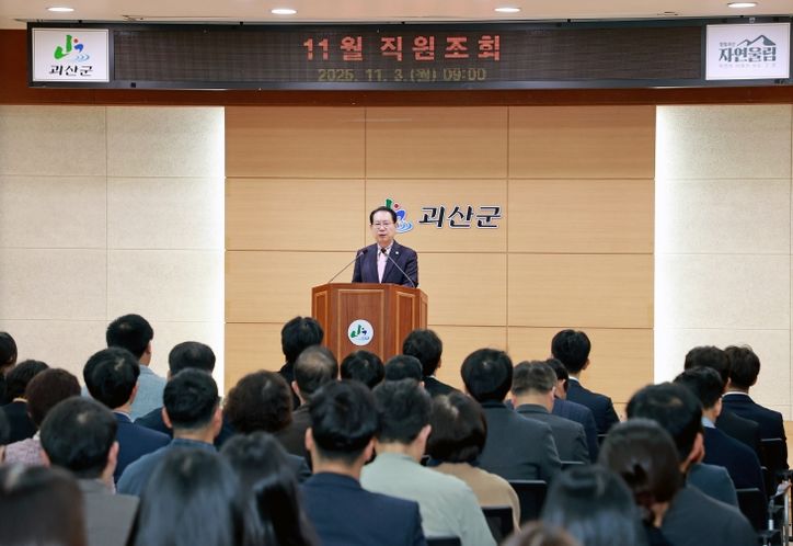 뉴한국방송뉴스통신사 권영분기자 기자 | 충북 괴산군은 3일 군청 대회의실에서 11월 직원조회를 열고, 올해 지역축제의 성과와 연말까지 중점 추진할 과제들을 공유했다.