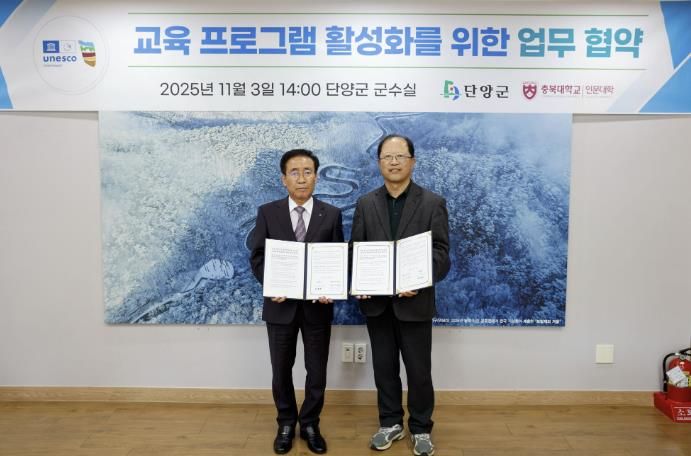 김문근 단양군수는 “이번 협약은 단양이 지닌 풍부한 인문‧사회문화 자원과 지질학적 유산을 연계한 교육 프로그램을 실질적으로 구현할 수 있는 중요한 계기”라며, “기관 간 상생과 협력을 바탕으로 지속가능한 교육‧관광 새애태계 조성과 지역 활성화를 위해 적극 지원하겠다”고 말했다.