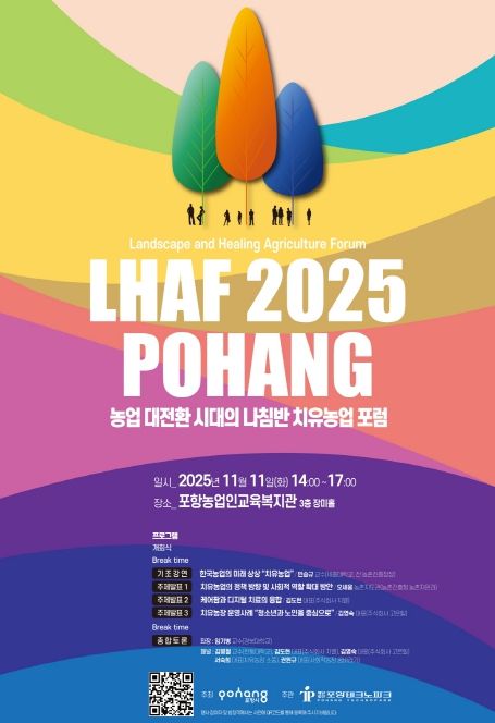 이현주 포항시농업기술센터 소장은 “이번 포럼은 농업의 새로운 사회적 가치로 주목받는 치유농업의 비전과 발전 방향을 지역 중심으로 논의하는 뜻깊은 자리”라며, “앞으로도 치유농업이 시민의 건강과 행복을 지키는 나침반이 될 수 있도록 최선을 다하겠다”고 말했다.