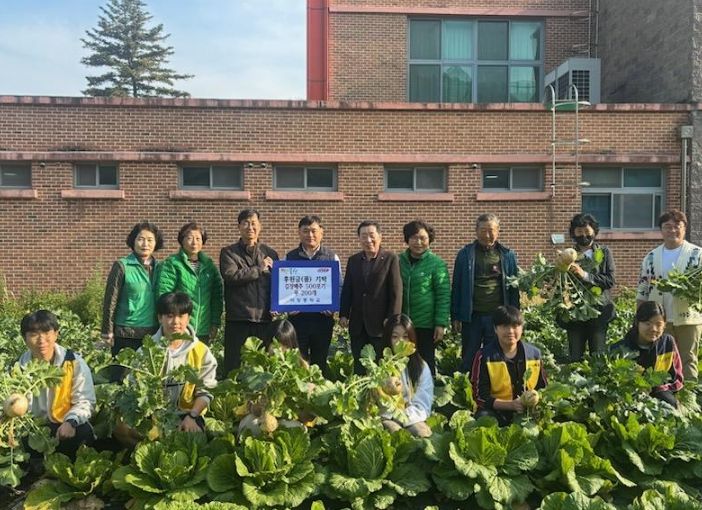 이번 기부는 학생들이 직접 가꿔온 학교 텃밭의 배추와 무 등 농작물을 수확하여 마장면행정복지센터에 기탁하는 방식으로 이루어졌다.