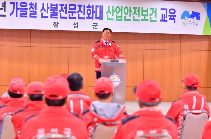 뉴한국방송뉴스통신사 신다은기자 기자 | 장성군이 지난 6일 오전 군청 아카데미홀에서 산불전문진화대원 34명을 대상으로 가을철 산업안전보건 교육을 실시했다.