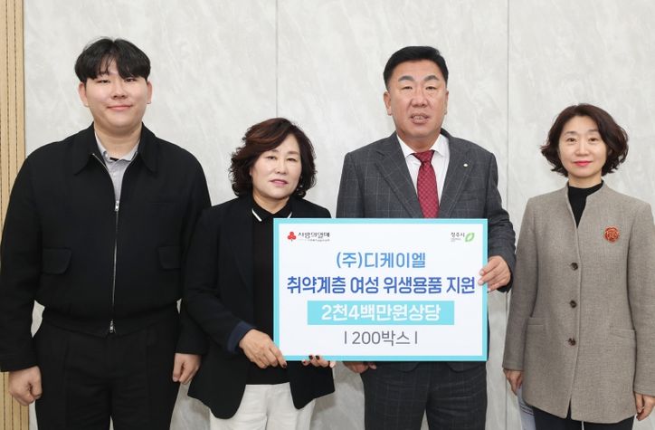 ㈜디케이엘은 청원구 북이면에 위치한 생활용품 도‧소매 기업으로, 이번 기부는 지역 내 여성 취약계층의 건강과 위생을 지원하기 위한 사회공헌 활동으로 마련됐다.