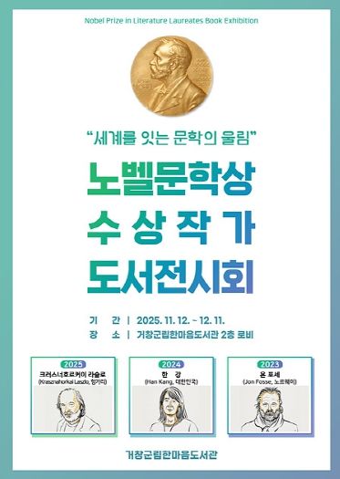 뉴한국방송뉴스통신사 신유철기자 기자 | 거창군은 2025년 노벨문학상 발표를 기념하여 군민들의 높아진 문학적 관심을 반영하고 세계문학의 흐름을 조명하기 위해 오는 12일부터 12월 11일까지 한 달간 한마음도서관에서 ‘노벨문학상 수상 작가 도서 전시회’를 개최한다.