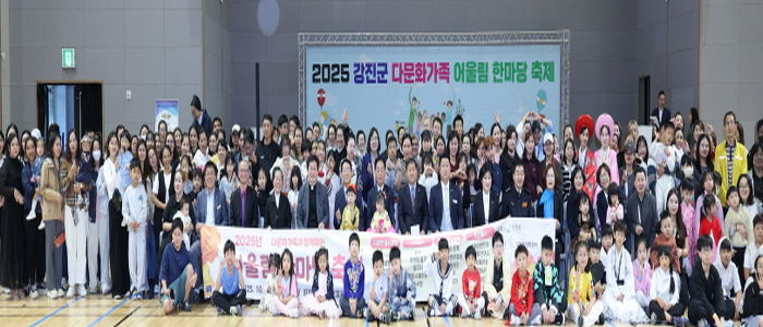 뉴한국방송뉴스통신사 신다은기자 기자 | 강진군이 지난달 25일 강진국민생활체육센터 제2실내체육관에서 ‘2025 강진군 다문화가족 어울림 한마당 축제’를 다문화가족과 이주노동자, 유학생 등 400여 명이 참여한 가운데 성황리에 마무리했다. 이번 행사는 강진군이 주최하고 강진군가족센터(센터장 조미아)가 주관했으며, 다양한 문화가 어우러지는 지역사회의 화합과 교류의 장으로 마련됐다.