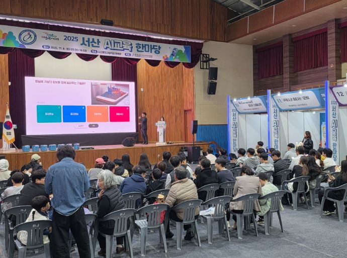 뉴한국방송뉴스통신사 신태공 기자 | 충청남도서산교육지원청은 지난 8일 서산중앙고등학교 체육관에서 관내 초·중·고등학생과 학부모를 대상으로 인공지능교육 한마당을 개최했다.