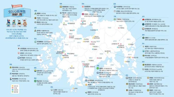 ‘수업 맛집 가이드맵’은 학교와 교사가 만들어온 고유한 수업브랜드를 한눈에 볼 수 있도록 정리한 지도다.