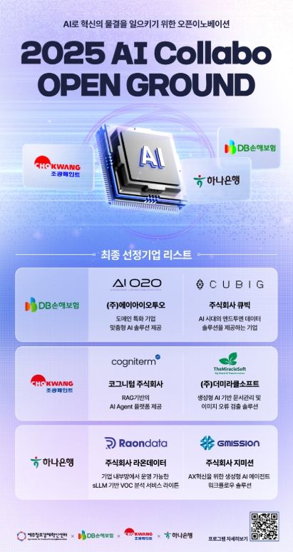 뉴한국방송뉴스통신사 신유철기자 기자 | 제주창조경제혁신센터(대표이사 이병선, 이하 제주센터)는 DB손해보험, 조광페인트, 하나은행과 함께 추진하는 특화산업 오픈이노베이션 ‘2025 AI 콜라보 오픈그라운드 프로그램’을 통해 최종 6개 스타트업을 선정하고, 기술 테스트와 솔루션 개발을 통해 실질적인 사업화 협력에 나선다.