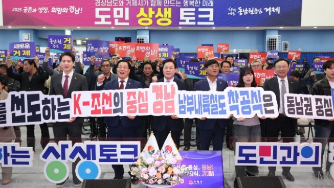 뉴한국방송뉴스통신사 신유철기자 기자 | 경상남도는 18일 거제 반다비체육센터에서 열린 ‘도민 상생토크’에서 기업혁신파크, 광역교통망, 미래산업 등을 연계한 성장전략을 제시하며 지원 의지를 밝혔다.