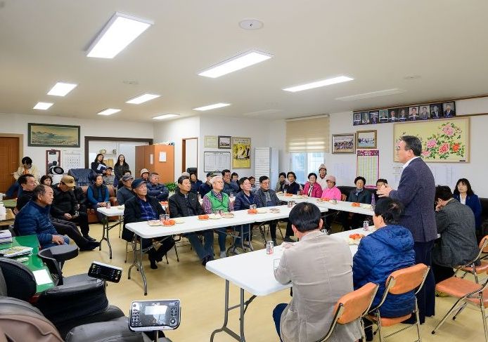 뉴한국방송뉴스통신사 신유철기자 기자 | 오순문 서귀포시장은 11월 18일 민생현장 방문으로 서귀포 해오름주간활동센터, 세화2리 경로당 그리고 양식어류 배합 사료공장인 대봉엘에프 영어조합법인을 차례로 방문했다.