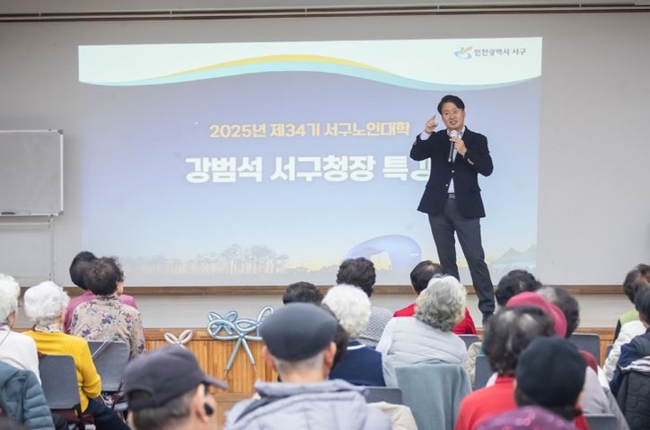 이번 특강은 어르신들과 서구청장이 함께하는 체조를 시작으로 ▲2025년 서구 주요 행정 현황 및 복지정책 브리핑 ▲향후 지역개발 계획 공유 ▲2026년 분구에 따른 지역발전 방향 등 어르신들의 생활 만족도를 높이고 지역 변화에 대한 이해를 돕는 데 중점을 두었다.
