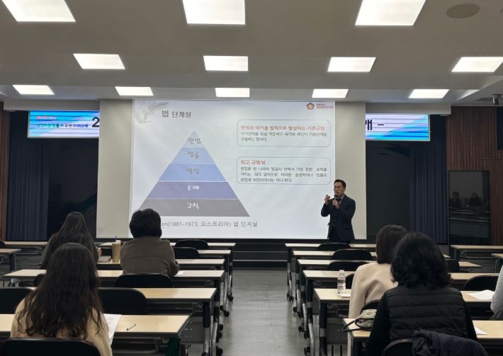 이번 특강은 헌법에 기반한 민주시민교육의 전문성을 강화하고 교원의 법적 이해도를 높이기 위해 마련된 것으로 헌법재판연구원 최성훈 교수가 ‘헌법재판의 이해’를 주제로 강의했다.