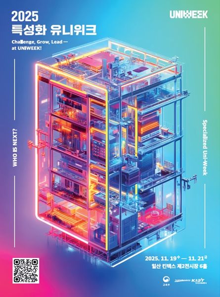 뉴한국방송뉴스통신사 권영분기자 기자 | 교육부와 한국산업기술진흥원(원장 민병주)은 11월 19일부터 11월 21일까지 일산 킨텍스에서 첨단산업 특성화대학 학생들을 위한 축제인 ‘유니위크(Uni-Week)’를 개최한다. 이에 앞서 11월 18일부터 특성화대학 반도체·이차전지 분야 경진대회 결선도 시작된다.