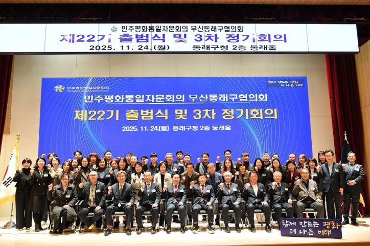 뉴한국방송뉴스통신사 신유철기자 기자 | 부산 동래구는 지난 11월 24일 민주평화통일자문회의 부산동래구협의회(협의회장 추한권)가 동래구청 동래홀에서 장준용 구청장, 자문위원 등 90명이 참석한 가운데 ‘제22기 출범식 및 2025년 3차 정기회의’를 개최했다고 밝혔다.