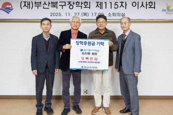 뉴한국방송뉴스통신사 신유철기자 기자 | 부산 북구는 최근 한사랑내과병원 김지원 원장이 (재)부산북구장학회에 장학기금 500만 원을 기탁했다고 밝혔다.