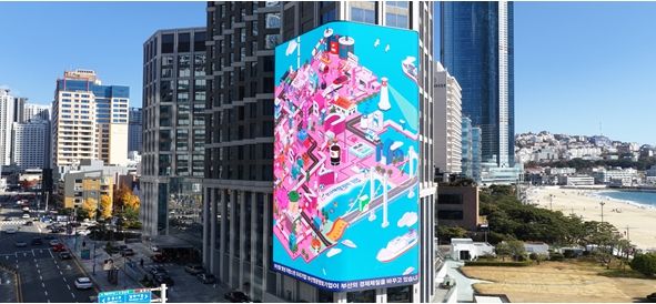 뉴한국방송뉴스통신사 신유철기자 기자 | 부산시는 해운대구 그랜드 조선 부산 미디어 파사드를 통해 지역경제를 이끌고 있는 '부산시 명문향토기업'의 우수성과 산업 역량을 홍보하기 위한 대형 미디어 아트월 영상 송출을 시작했다고 밝혔다.