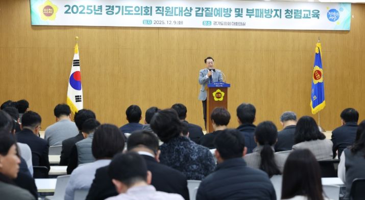 뉴한국방송뉴스통신사 신유철기자 기자 | 경기도의회는 9일 오전 의회 대회의실에서 전 직원을 대상으로 ‘갑질예방 및 부패방지 청렴교육’을 실시했다.