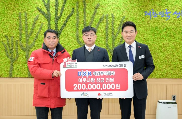 뉴한국방송뉴스통신사 신다은기자 기자 | 순천시는 지난 10일 DSR제강 주식회사(대표 홍하종․홍석빈)에서 희망2026나눔캠페인 이웃돕기 성금 2억원을 기탁했다고 밝혔다.