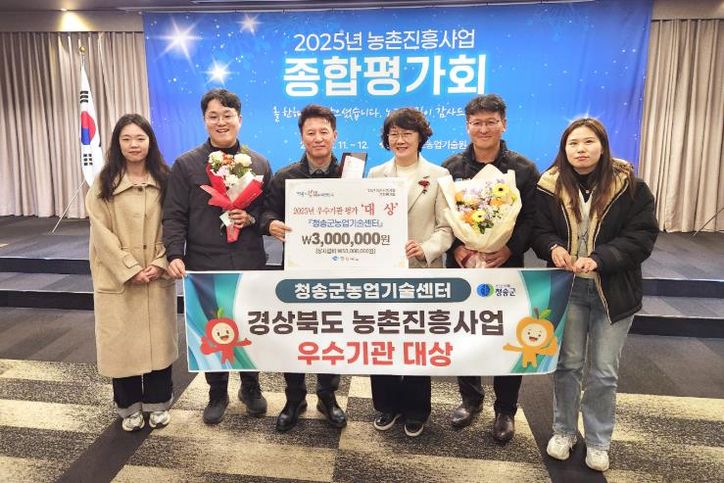 뉴한국방송뉴스통신사 신유철기자 기자 | 청송군농업기술센터가 경상북도농업기술원이 주관한 ‘2025년도 농촌진흥사업 종합평가회’에서 우수기관 대상에 선정되는 영예를 안았다.