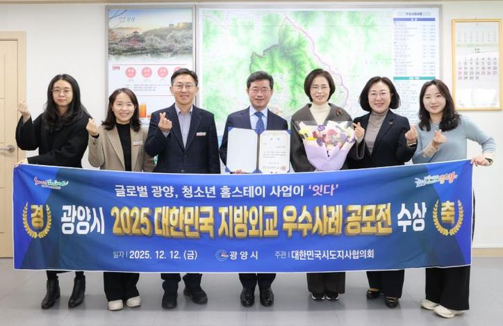 뉴한국방송뉴스통신사 신다은기자 기자 | 광양시는 지난 12일 대한민국시도지사협의회가 주관한 ‘2025 전국 지방외교 우수사례 공모전’ 본선에서 국제 청소년 홈스테이 사업이 ‘장려상’을 수상했다고 밝혔다.