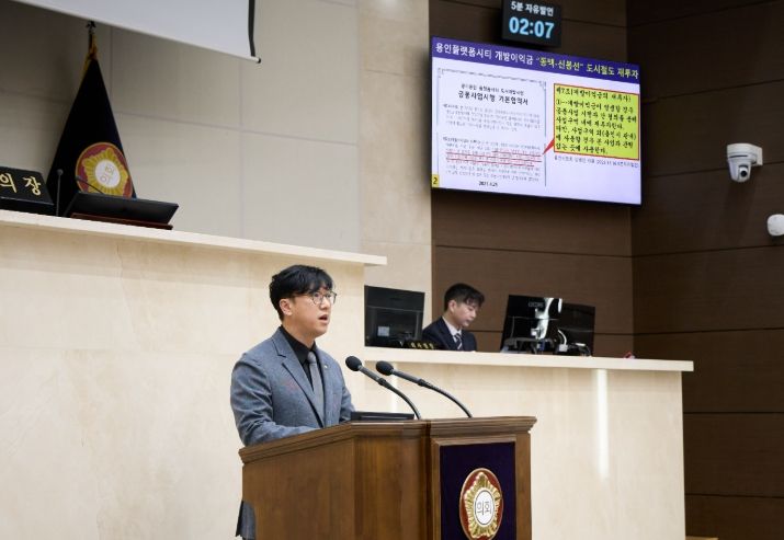 뉴한국방송뉴스통신사 신유철기자 기자 | 용인특례시의회 김병민 의원(구성동,마북동,동백1동,동백2동/더불어민주당)은 16일 열린 제298회 임시회 제1차 본회의에서 5분 자유발언을 통해 ‘제2차 경기도 도시철도망 구축계획’에 반영된 동백–신봉선 철도망의 원활한 추진을 위한 정책적 대응과 선제적 준비를 강력히 촉구했다.