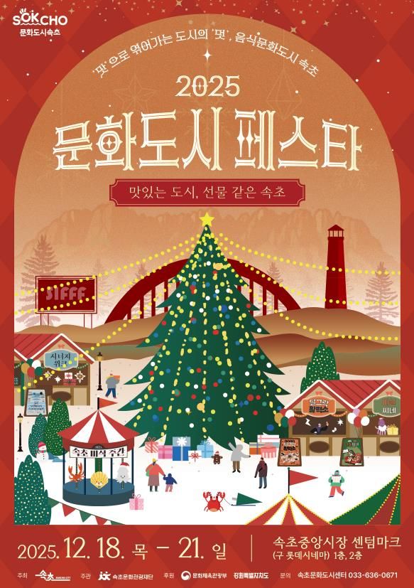 뉴한국방송뉴스통신사 양호선기자 기자 | (재)속초문화관광재단은 속초시의 대한민국 문화도시 1년 차 사업을 마무리하며 오는 12월 18일부터 21일까지 4일간 속초중앙시장 센텀마크(구 롯데시네마) 에서 대한민국 문화도시 성과공유회‘2025 문화도시 페스타’를 개최한다.