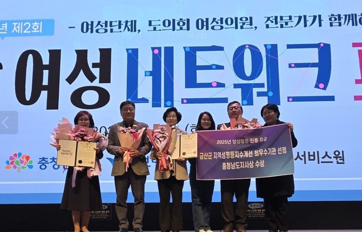 뉴한국방송뉴스통신사 신태공 기자 | 금산군은 지난 16일 충남 보령시 보령머드테마파크에서 열린 충남 여성 네트워크 포럼에서 지역성평등지수 개선 및 성별영향평가 실적을 인정받아 양성평등 진흥 분야 최우수기관 표창을 받았다.
