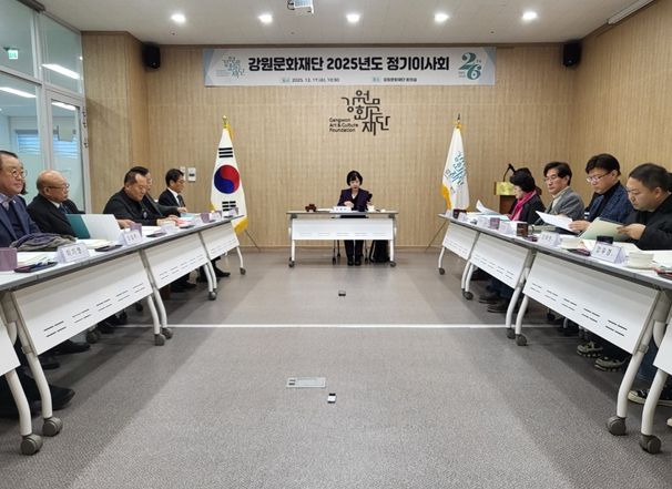 뉴한국방송뉴스통신사 신유철기자 기자 | 강원문화재단은 올해 재단 운영의 성과를 되짚어 보고, 2026년도 사업계획 및 취업규칙 정비를 위한 제규정 개정안 등을 논의하는 2025년도 정기이사회를 17일 재단 회의실에서 개최했다.