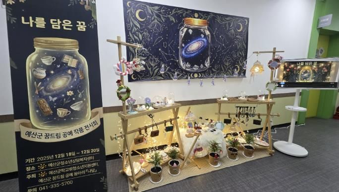 뉴한국방송뉴스통신사 신태공 기자 | 예산군학교밖청소년지원센터는 18일부터 20일까지 센터에서 학교 밖 청소년들의 창작 공예 작품 전시회 ‘나를 담은 꿈’을 개최하고 있다.