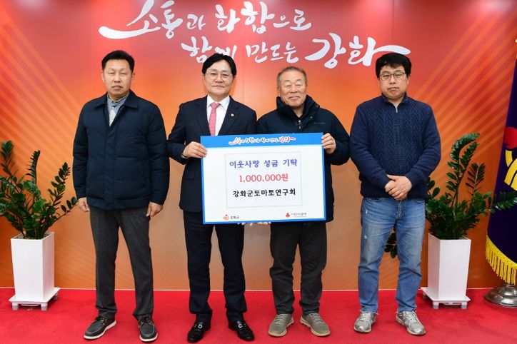 뉴한국방송뉴스통신사 신유철기자 기자 | 강화군은 강화군 토마토연구회(회장 강진구)가 지난 18일 사회복지공동모금회를 통해 성금 100만 원을 기탁했다고 밝혔다.