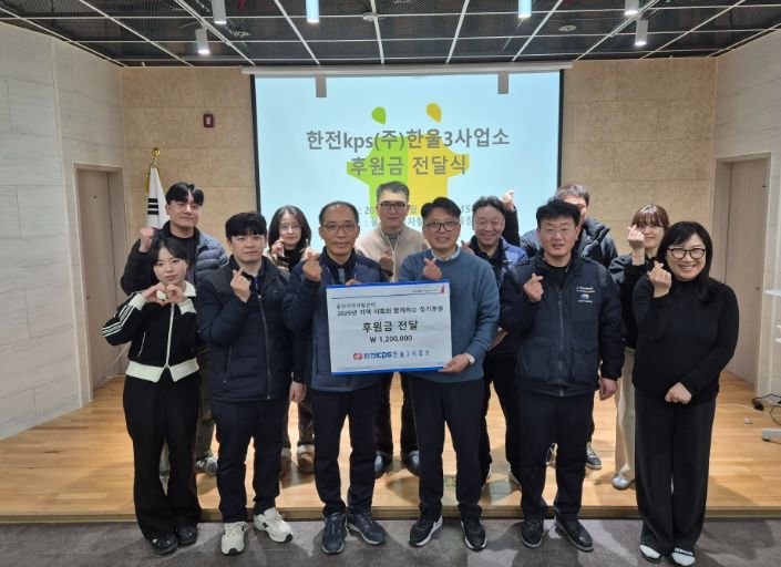 이날 전달식에는 장성철 한울3사업소장과 이민호 노조위원장을 비롯한 기관 관계자들이 참석했으며, 후원금은 한전KPS(주) 한울3사업소 직원들이 지역사회를 위해 자발적으로 모금한 것으로 연말을 맞아 저소득층 참여자들의 복지 증진에 사용될 예정이다.