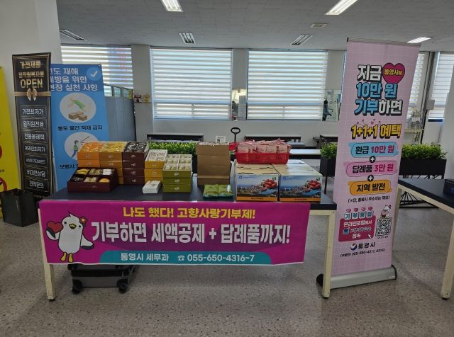 통영시는 점심시간을 활용해 임직원을 대상으로 제도를 안내하고 현장 기부 행사를 진행했다. 기부에 참여한 직원에게는 욕지고구마, 통영웰빙건강빵, 멸치오란다를 추가로 증정하는 이벤트를 함께 운영해 적극적인 참여를 이끌어냈다.