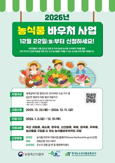 뉴한국방송뉴스통신사 양호선기자 기자 | 속초시가 2025년 12월 22일부터 2026년 농식품 바우처 지원사업 신청접수를 시작한다.